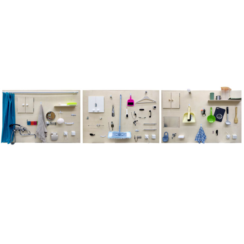 Развивающие элементы: геоборд, игрушка — телефон, пластиковый замок на ремне, замок — молния, звонок, вилка с розеткой, выключатель, дверцы на петлях, лампа, бусины, различные металлические замочки