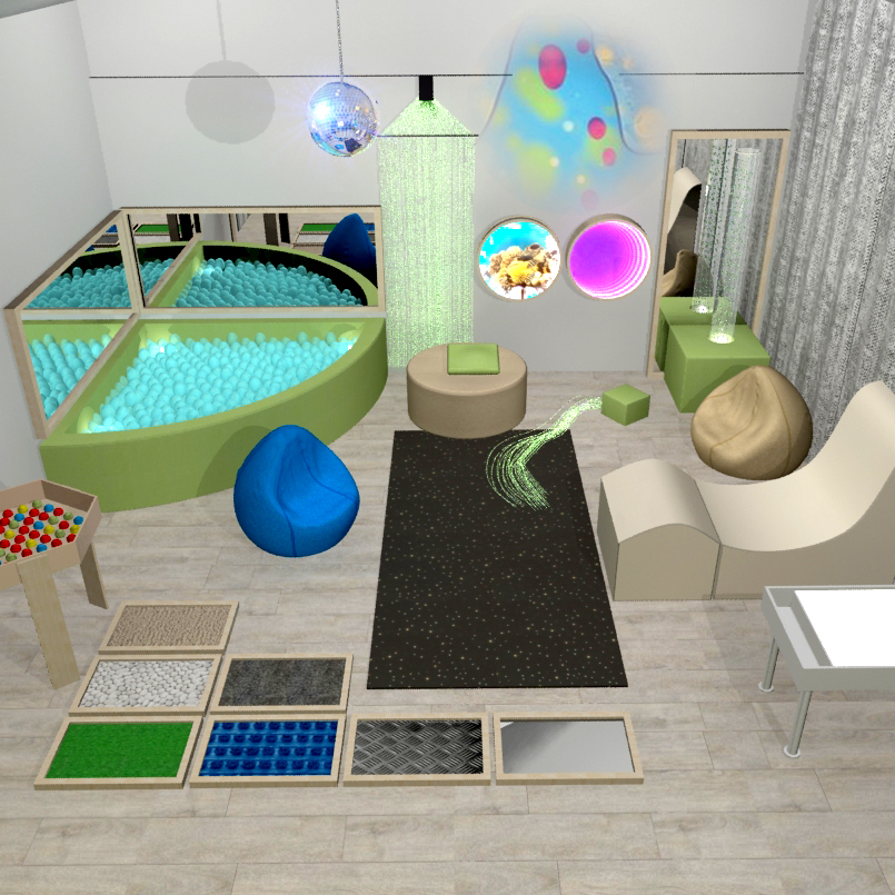 | Cухой бассейн управления угловой 1500х1500х500х200 мм., с подсветкой, 1300 прозрачных шариков — 1шт. Зеркальная панель к сухому бассейну 1500х500 мм. — 2шт; Фиброоптический гребень (150 волокон) 800х800х2000 мм. — 1шт; Напольный ковер «Звездное небо» пульт ДУ (300 точек) 2000х1000 мм. — 1шт; Воздушно — пузырьковая колонна с пультом — 2000 мм., диаметр — 180 мм. — 1шт; Мягкая платформа для воздушно — пузырьковой трубки угловая 800х800х300 мм. – 1шт; Зеркало для воздушно-пузырьковой трубки 1700х800 мм. — 1шт; Кресло-груша D — 700 мм. — 2шт; Стол для рисования песком 500х400мм., цветной — 1шт; Песок для рисования 12 кг, — 1шт; Стол-мозаика шестигранный — 1шт; Терапевтическое кресло-кубик средний 700х600х600 мм. — 1шт; Световой проектор «Меркурий» Колесо спецэффектов («жидкое» — с неповторяющимся рисунком) — 1шт; Панно «Бесконечность» круглое диаметр 500 мм. — 1шт; Панно «Иллюминатор» диаметр 505мм — 1шт Зеркальный шар с мотором (необходим источник света) d-300, — 1шт; Привод вращения к зеркальному шару — 1шт Источник света к зеркальному шару. — 1шт; Тактильная дорожка (7 составных модулей) В комплект входит подставка на колесиках. 500х300х30 мм. — 1шт; Детская подушечка с гранулами 500х500 мм. — 1шт; Мягкая форма “Пуфик круглый” 700х300 мм. — 1 шт. Шторы «БлекАут», 1,5м — 4шт Мягкий кубик с пучком волокон (кол-во 100шт), 300*300*300 мм.- 1 шт. |